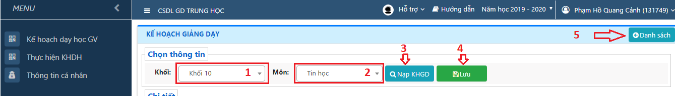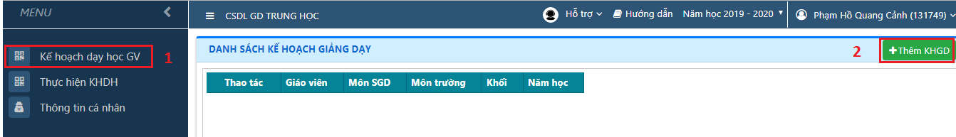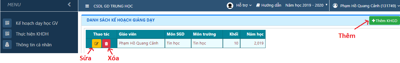 Bước 3. Vậy là xong phần Thêm KHGD. Thầy/Cô có thể xem, thêm, sửa, xóa danh sách các KHGD như hình bên dưới